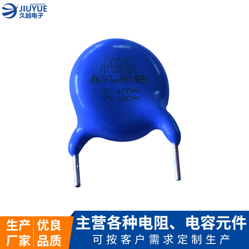 Y1系列安規(guī)陶瓷電容JYCC-Y1-400V/AC-222M藍(lán)色交流瓷片電容廠家